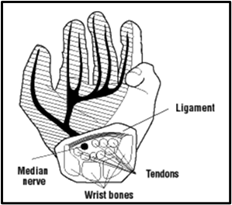 Tekanan pada saraf akibat gerakan berulang, postur yang salah, atau aktivitas berat dapat menyebabkan gangguan, seperti sindrom terowongan karpal. Berikut merupakan gambar pergelangan tangan dalam kondisi alami dan kondisi sindrom terowongan karpal.